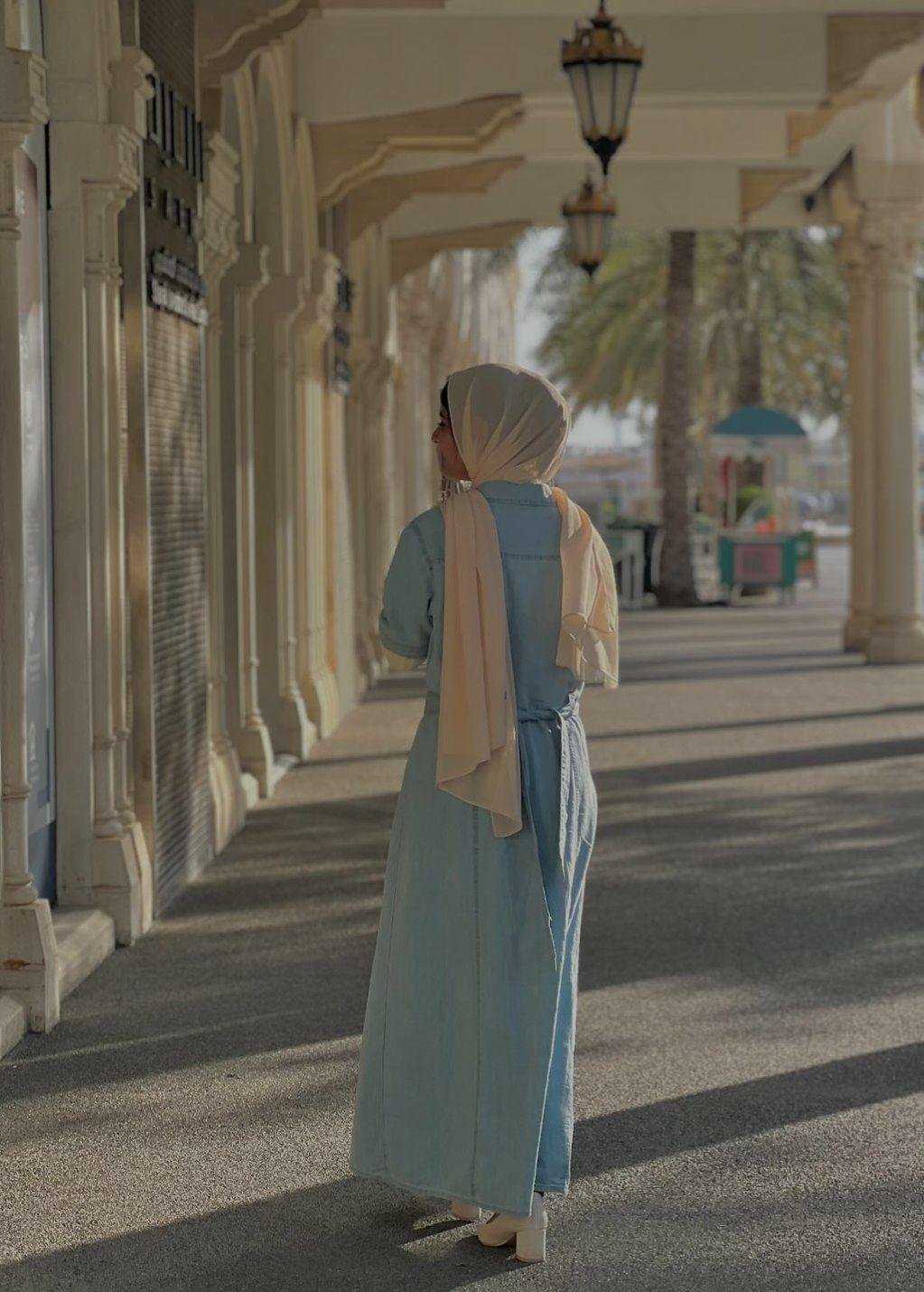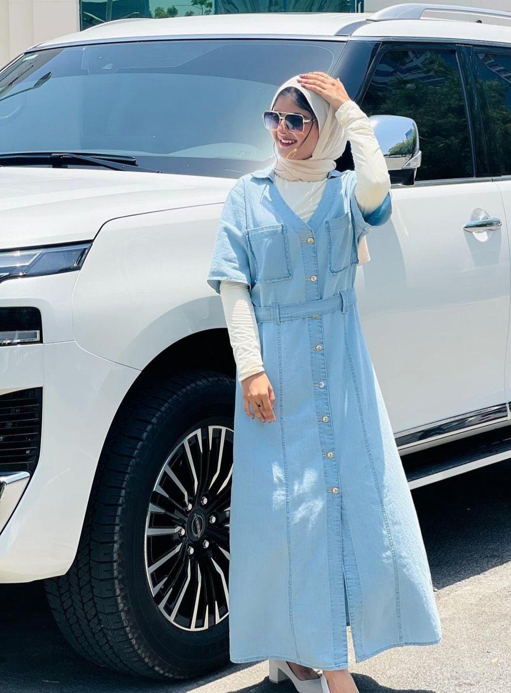 ◼Fabric : five sleev long jeans maxi dress