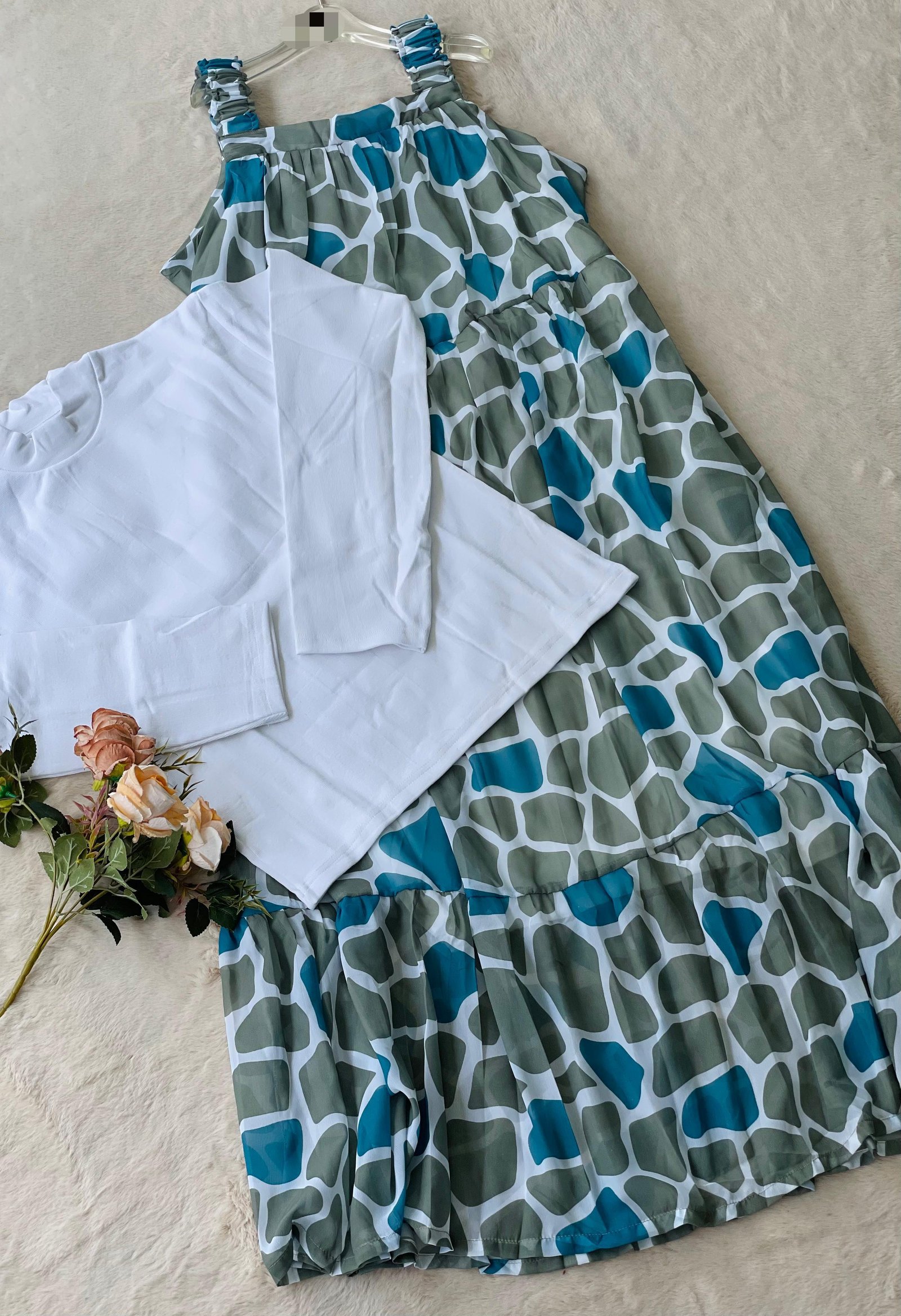 ~DECENT PRINTED SLEEVELESS PINNAFORE STYLED WITH CHUNKY INNER