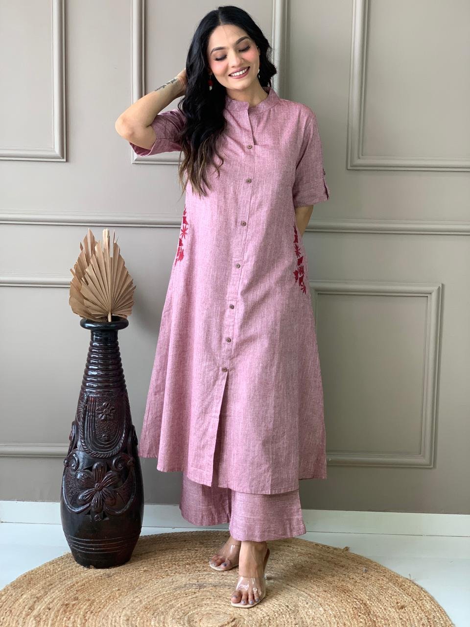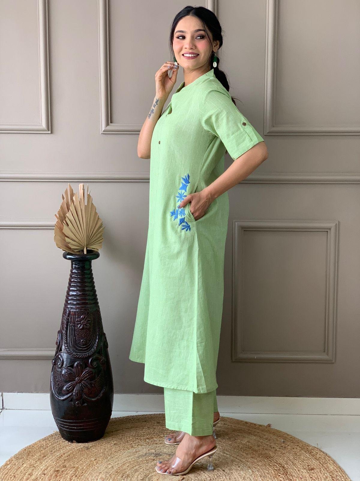 ◼Stylish awesome south cotton A-line Patten kurti with ankle length pants cord set
